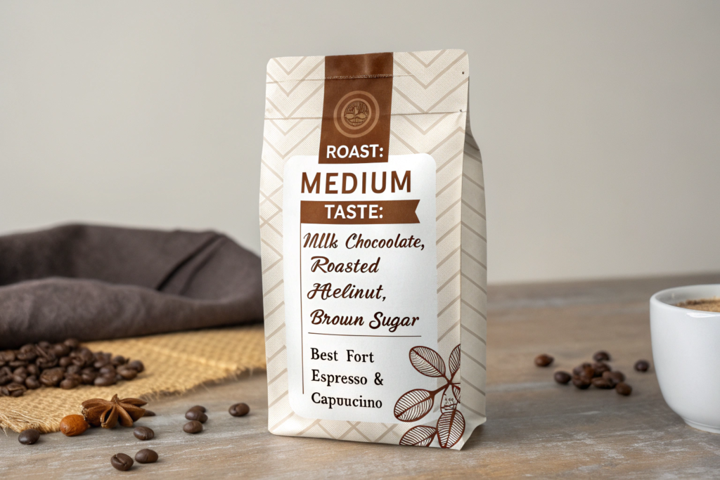 Use clear, accessible language on your packaging and marketing. Instead of just "Medium Roast," say: "A balanced roast highlighting milk chocolate and hazelnut, with a smooth finish. Perfect for espresso and milk-based drinks." For a lighter roast: "A lighter roast showcasing the bean's origin with notes of red plum and brown sugar. Best enjoyed as pour-over or filter." This guides the consumer to the right brewing method and prepares their palate. For B2B clients, provide the roast profile specs and a flavor wheel for the batch. This professional documentation helps their baristas dial in and speak knowledgeably about the coffee, adding value to your partnership.