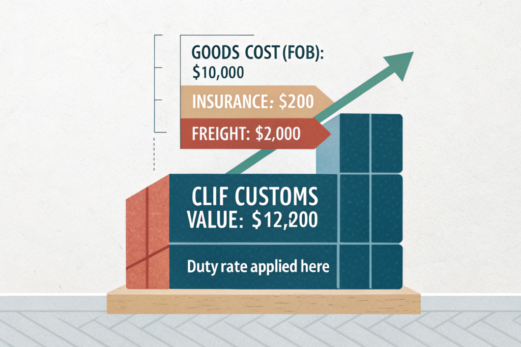 The duty is a percentage of a specific value, not your invoice price. That value is the "Customs Value" or "Dutiable Value." The most common basis is the CIF Value (Cost, Insurance, and Freight).