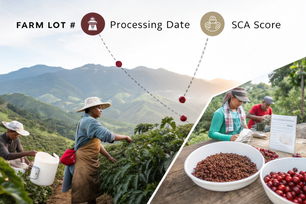 - Lot tracking numbers: A unique identifier that follows a specific batch of coffee through milling, grading, and bagging.
