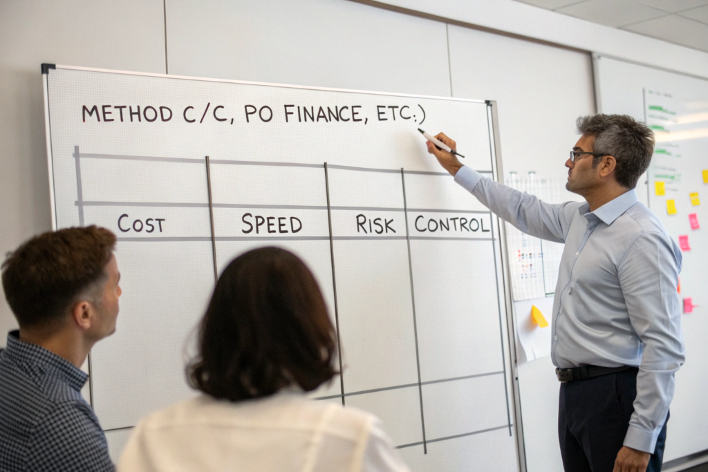A simple decision framework might look at cost, speed, and control. A Letter of Credit is secure but slower and involves bank fees. Open Account with credit insurance is faster and cheaper but requires trust. Inventory financing unlocks cash after you have the beans.