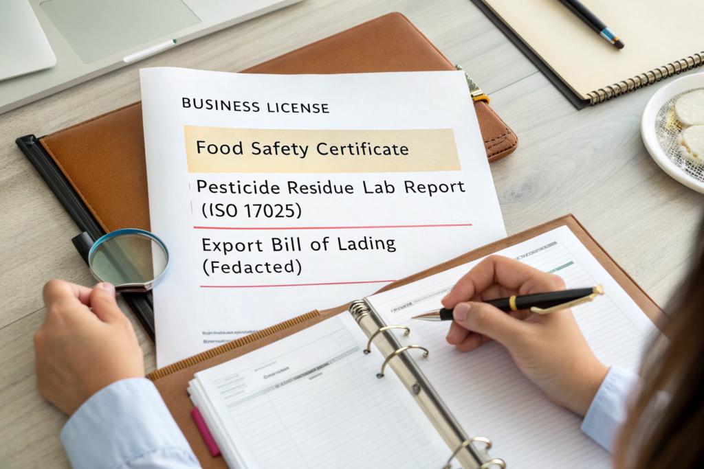You should demand a minimum of four core documents from a potential Asian OEM partner: (1) The company's Business License, with a clear English translation showing the scope of business includes "manufacturing" and "import/export." (2) A recent, third-party Pesticide Residue and Ochratoxin A analysis report from an ISO 17025 accredited lab. (3) A redacted copy of a recent Bill of Lading for an export shipment to your region, proving export experience. (4) Any relevant food safety or quality certifications (e.g., HACCP, ISO 22000) for their processing facility.