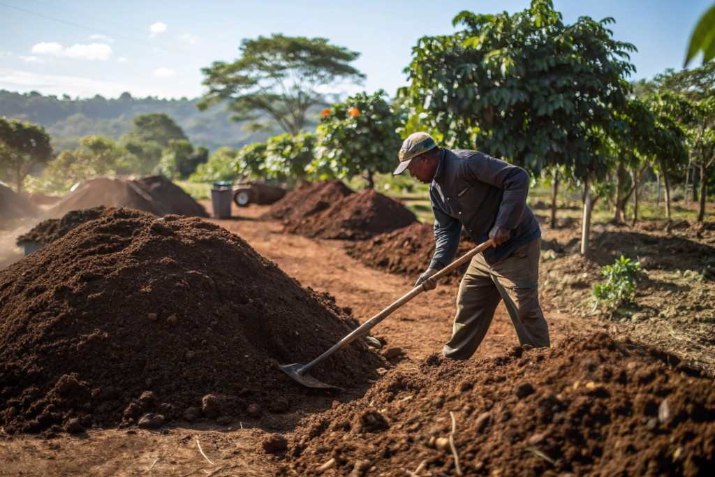 Wet processing uses water and energy. The cherry pulp needs to be managed. If you throw it in a pile, it releases methane. That is a strong greenhouse gas. We compost our pulp. We turn it into fertilizer. That reduces methane. It also cuts our fertilizer bill.