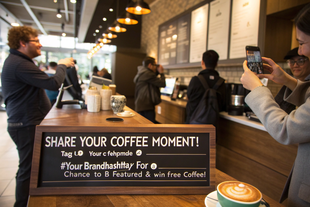 - In-Store: Create a digital display or a physical "wall of fame" in your cafe that cycles through the best customer photos.