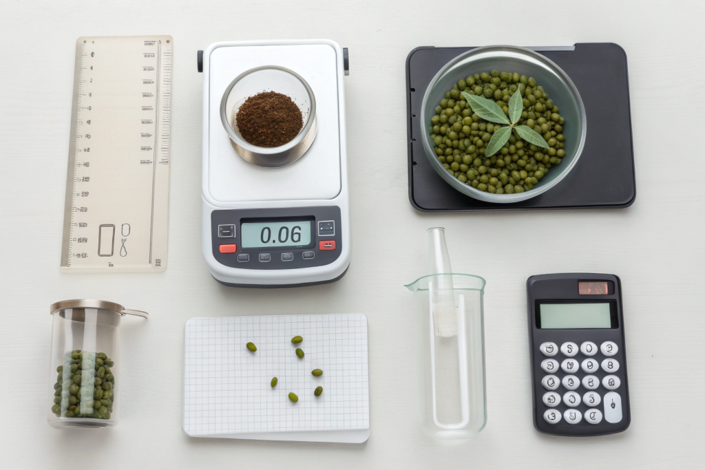 To measure coffee bean density, you will need three essential pieces of equipment: a precision digital scale accurate to at least 0.1 grams, a graduated cylinder or volumetric container (a 500ml or 1000ml size is ideal), and a sample of the green coffee beans you want to measure.