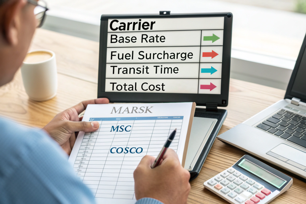 Always get at least three quotes. This could be from different freight forwarders or directly from the shipping lines' NVOCC (Non-Vessel Owning Common Carrier) arms.