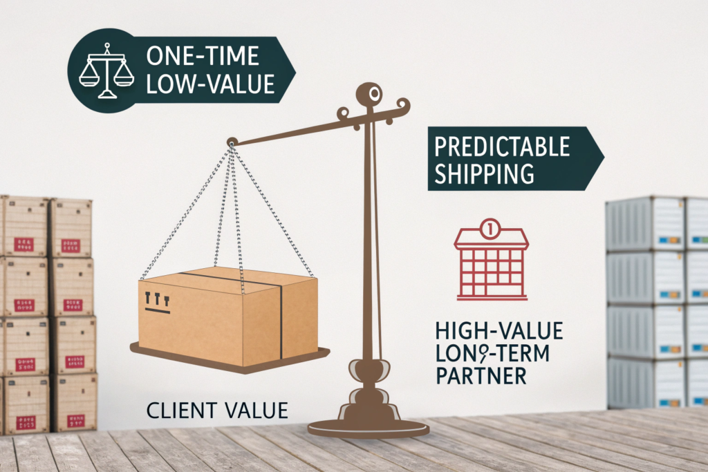 But I'm just a small business, I don't have much volume. Volume is important, but it's not the only thing. Predictability and professionalism are just as valuable. A small client who ships one container every month, on schedule, and provides accurate paperwork is often more valuable than a large, chaotic client who ships 10 containers unpredictably.