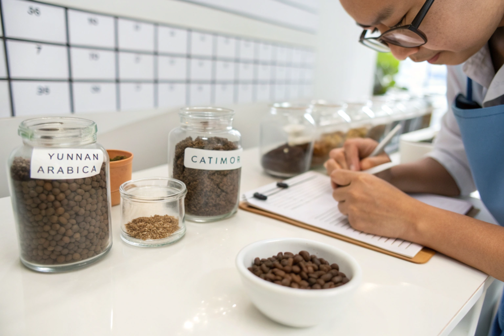 - Roasting style: Light, medium, dark, or a custom roast? This dictates which bean samples you select—some Yunnan Arabicas shine with a light roast, while our Robustas are perfect for dark roasts used in espresso blends.