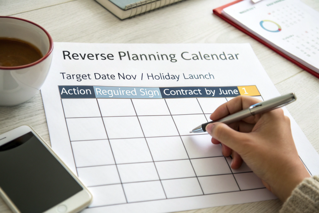 Using a reverse calendar involves starting with the non-negotiable "on-shelf" date for your seasonal offering, then subtracting the total estimated lead time (12-16 weeks) to arrive at the "Order By" date, and then building in an additional 4-6 weeks of buffer for sampling, contract negotiation, and unforeseen delays.