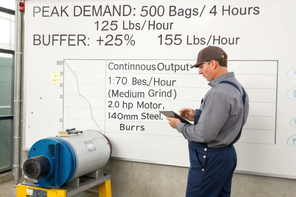 Buying too much grinder wastes capital and space. Buying too little grinder destroys your workflow and the machine itself. You must calculate your peak hourly demand, not just your daily average.