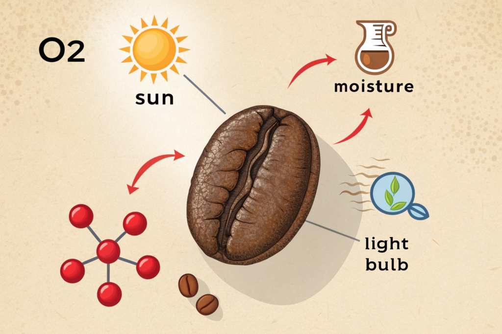 Even the freshest beans from our farm will degrade quickly if mishandled after roasting. The clock starts ticking at the roaster, and every step in your supply chain either slows it down or speeds it up dramatically.