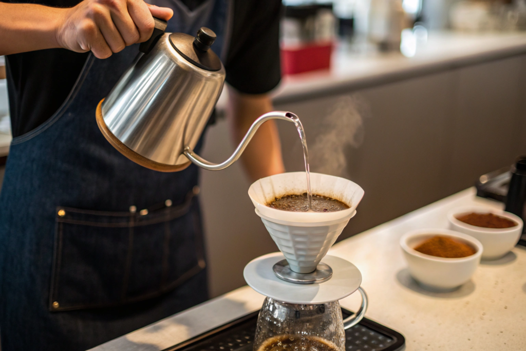 | Low (gentle pour) | Slow | Clean, balanced, sweet | Pour-over (gooseneck) |