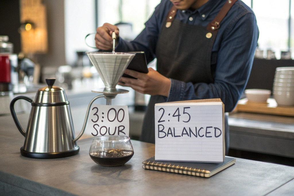 There’s a range, not a single number. A coffee might taste great between two minutes forty seconds and three minutes fifteen seconds. That’s fine. The goal is consistency, not perfection.