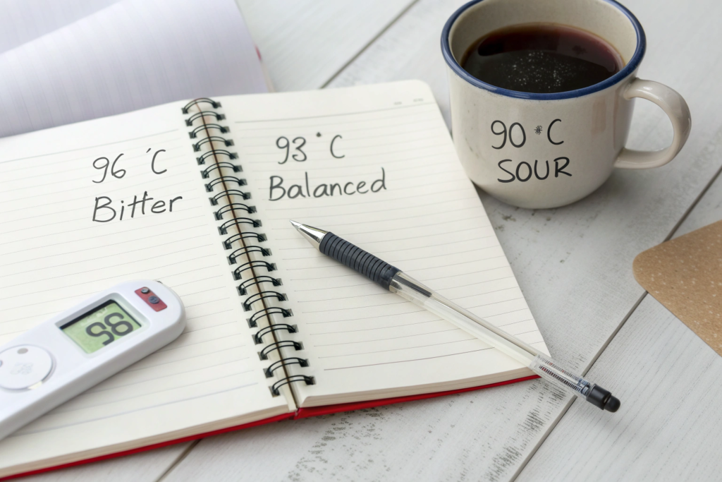 Step three: adjust. If it’s sour, increase temperature by 2°C. If it’s bitter, decrease temperature by 2°C.
