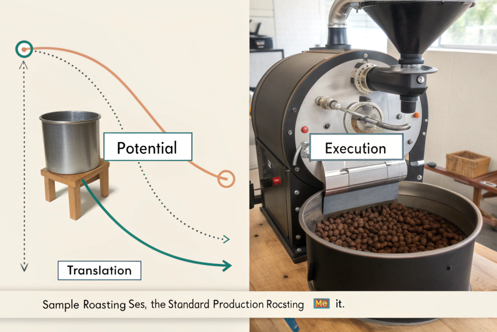 Translate, don't replicate. The sample roast establishes potential. Your production roast must realize that potential with your equipment, your water, and your market's preferences.