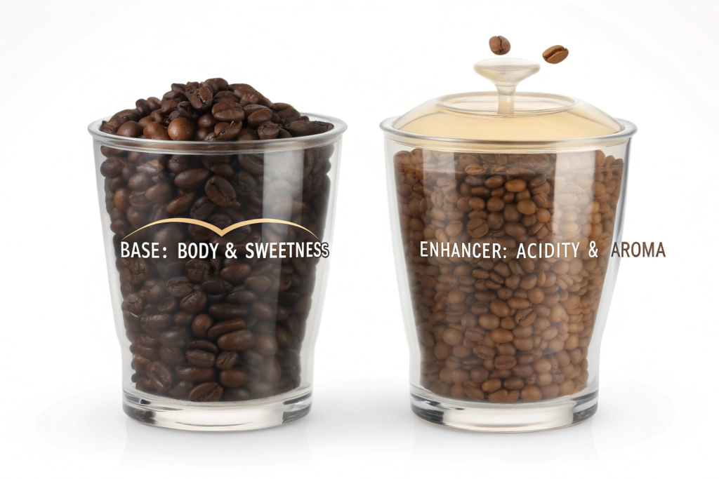 Blending allows a roaster to become a flavor architect. The most common and effective dual-origin strategy is the Base + Enhancer model: