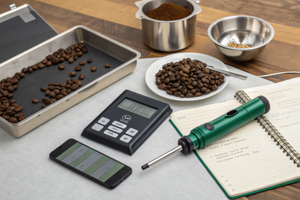 Are there other essential gadgets I need? Yes, a few key tools are non-negotiable for professional quality control. You need a highly accurate digital scale for weighing, a moisture meter to check the condition of your green coffee upon arrival, and a colorimeter to ensure your roasted batches are consistent.