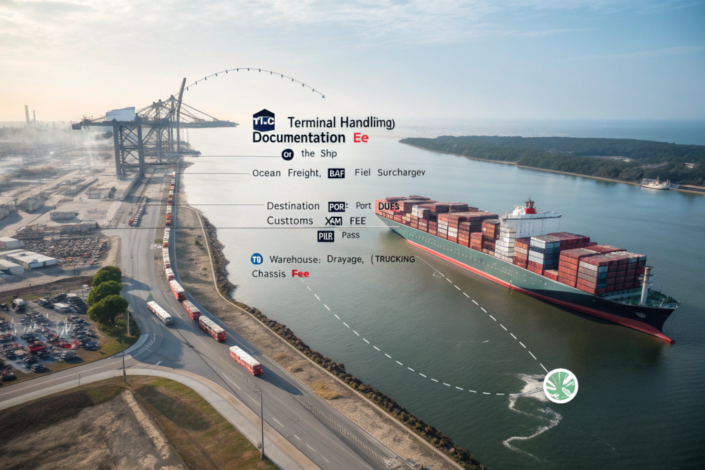 Think of the journey: origin port handling, ocean transit, destination port handling, and final trucking. Each handoff comes with a price tag.