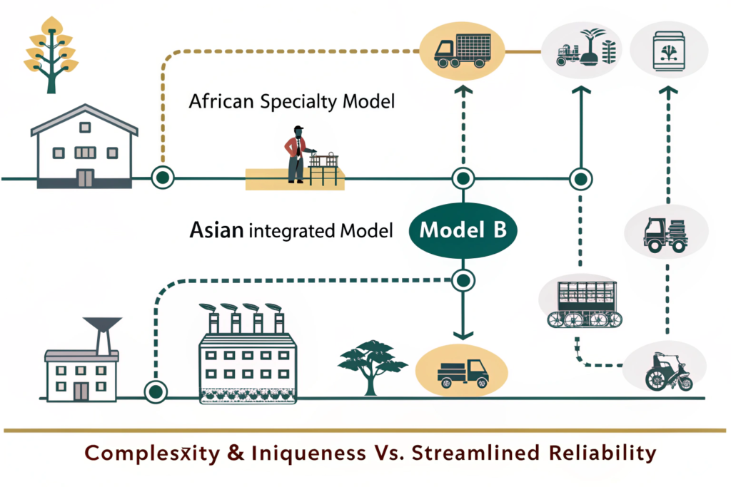 The way coffee is traded from these continents reflects their history and shapes the buyer's experience. Africa's model is often fragmented and terroir-focused; Asia's is often consolidated and volume-driven.