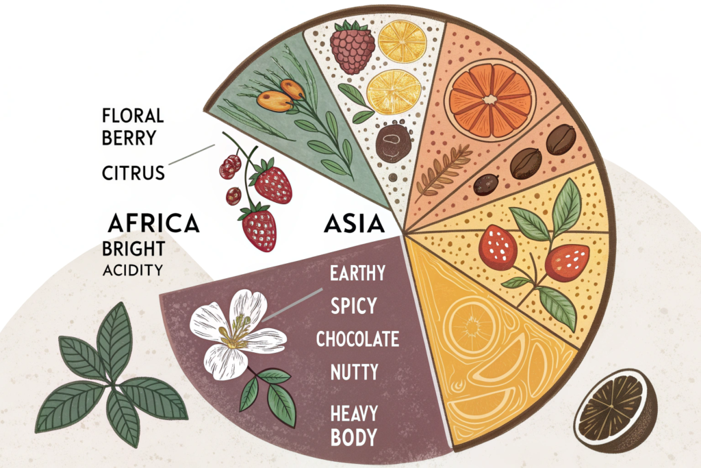 When you cup coffees side by side, the continental identities become unmistakable. Think of it as a sensory map.