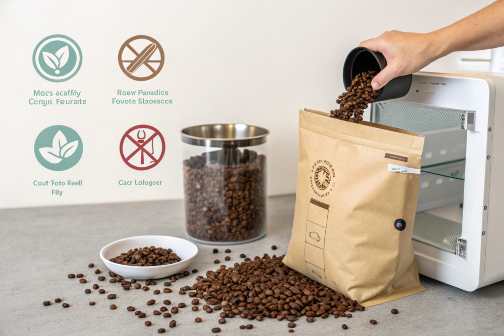 Should I just put my coffee in the freezer? Please, no. This is one of the biggest myths in coffee. The freezer is a very humid environment, and freezing can damage the cellular structure of the bean. The best way to store roasted coffee is in a cool, dark, dry place, in an airtight container or the original one-way valve bag. Your storage strategy is your last line of defense.