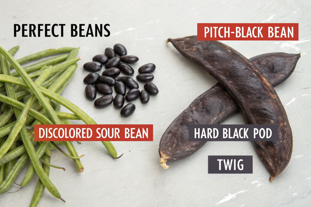 A black bean is essentially rotten. It's the result of over-fermentation or a dead seed inside the cherry. When roasted and brewed, it tastes intensely bitter, medicinal, and ashy. Honestly, it's the flavor of something that has gone bad. One black bean in a 350g batch is enough to taint the entire pot of coffee with a foul, rubbery taste. This is why visual quality control is non-negotiable.