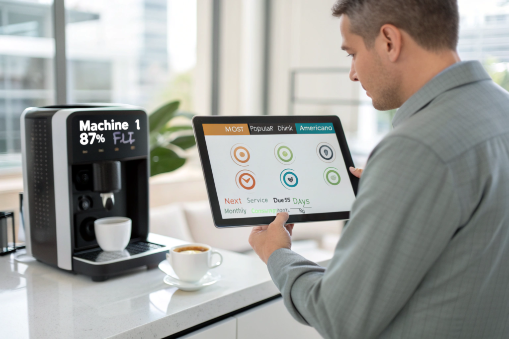 - Bean and Water Levels: Sending alerts to the facility team or the service provider when supplies are low, enabling just-in-time restocking.