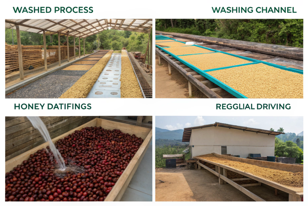 Washed processing is the most common method for specialty coffee. It produces clean, bright, consistent flavors.