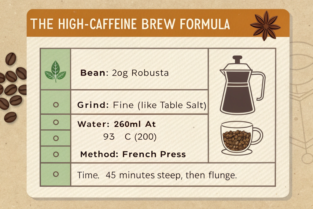 Brewing the highest caffeine coffee is a deliberate exercise in coffee science. It requires starting with the right raw material—Robusta beans—and then optimizing the extraction process through a fine grind, long hot water immersion, and a strong coffee-to-water ratio. The French Press or full-immersion pour-over methods are your best tools for the job.