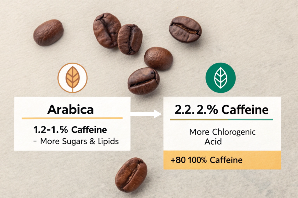 This is the single biggest lever you can pull. The species of coffee plant determines the caffeine baseline.