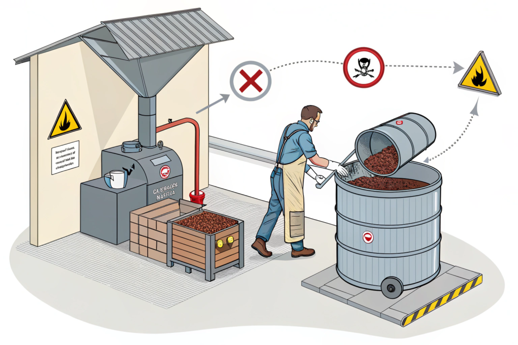 - Daily Protocol: Assign a staff member to empty the collection barrel into the outdoor metal storage bin as part of the post-roast shutdown checklist. This routine is critical for safety.