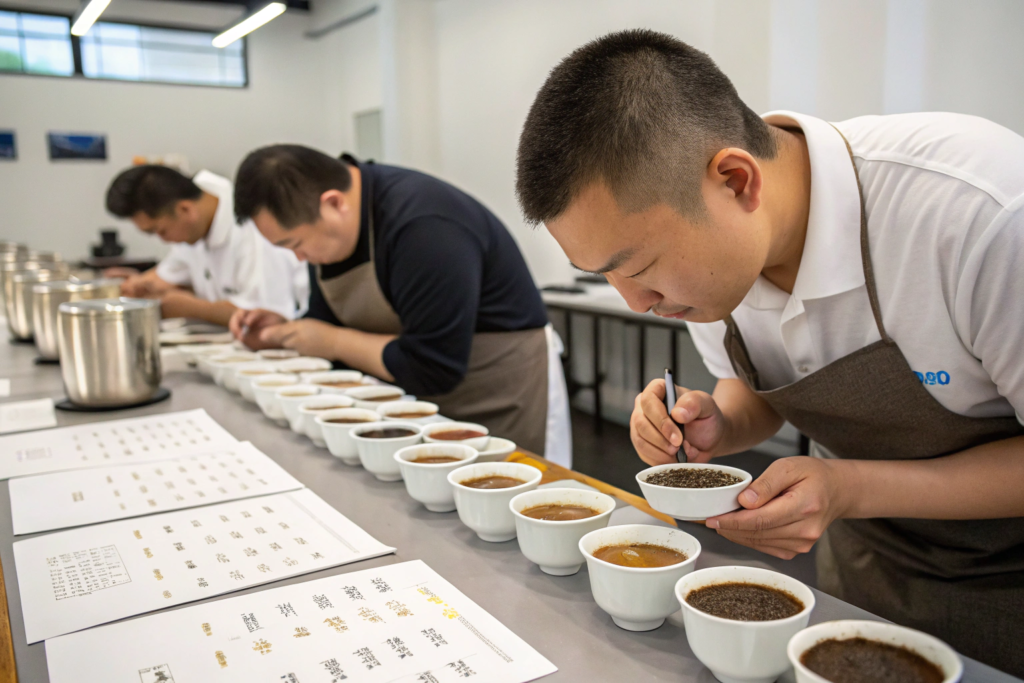 Blind cupping eliminates brand bias. Label samples with codes, not names. Evaluate without knowing origin or supplier.
