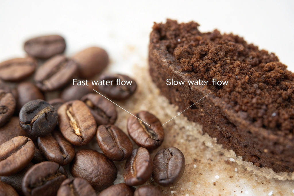 Water flow is the other factor. In brewing methods like pour-over or espresso, water has to pass through the coffee bed.