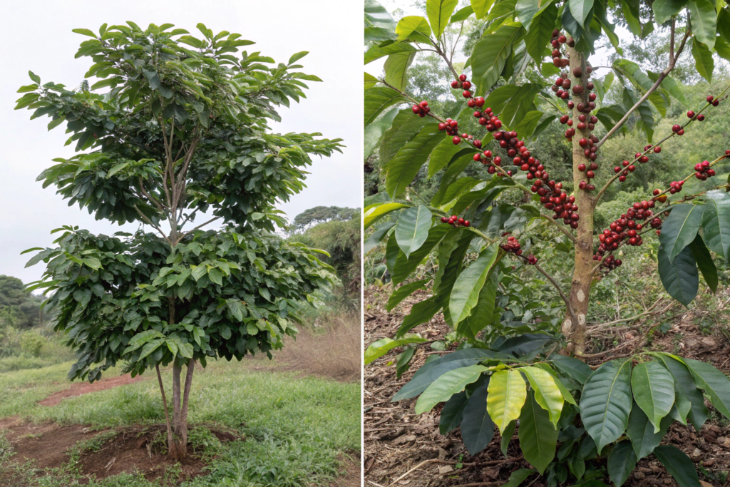 - Size and Yield: Liberica trees are true trees, capable of growing up to 20 meters (65 feet) high if left untrimmed, making harvesting much more difficult than for the shorter Robusta shrubs. Robusta is generally a higher-yielding plant, producing more coffee cherries per hectare.