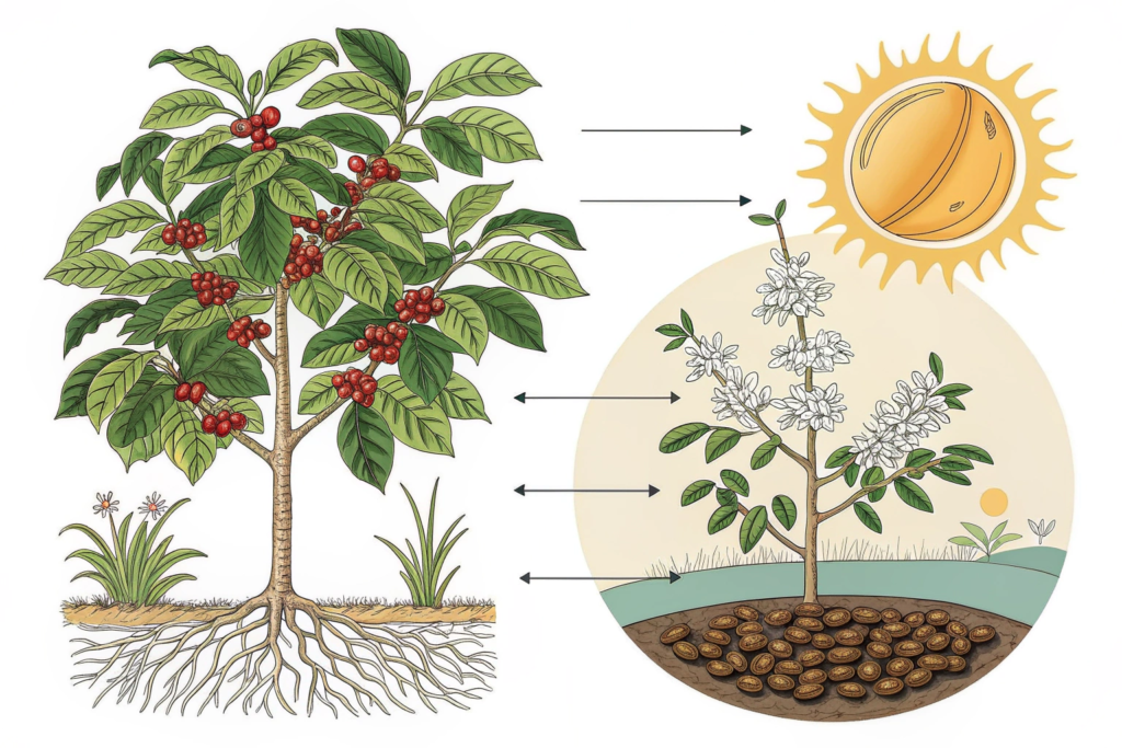 - Fewer defects. Reduced disease pressure means fewer damaged beans (e.g., from berry borer or sour rot).