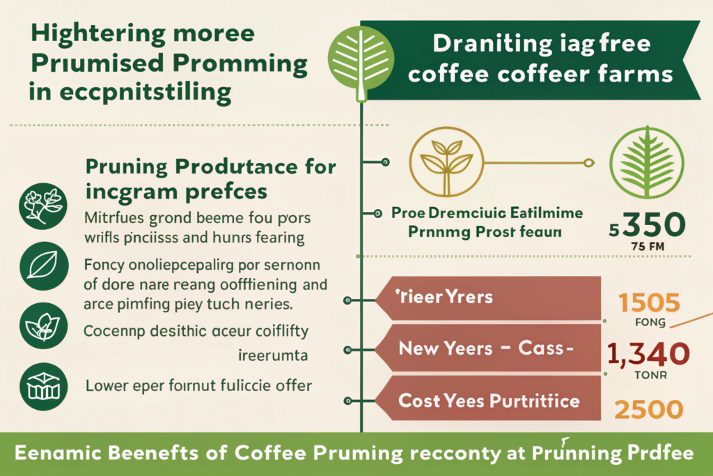 A disciplined pruning program leads to higher, more consistent yields per hectare, extended productive lifespan of trees (from 15 to 30+ years), reduced volatility in annual income, and lower long-term costs for pest control and fertilizer per unit of coffee produced.