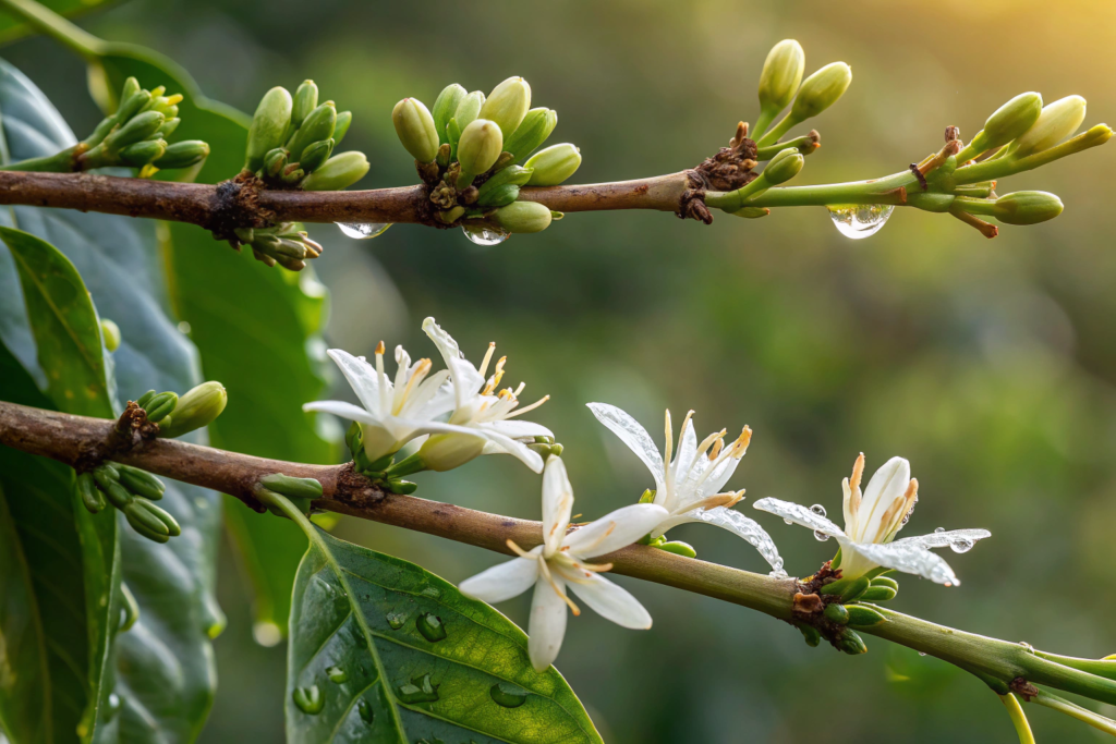 Coffee flowering is not random. It follows a pattern. A dry period, then rain. That sequence is critical.