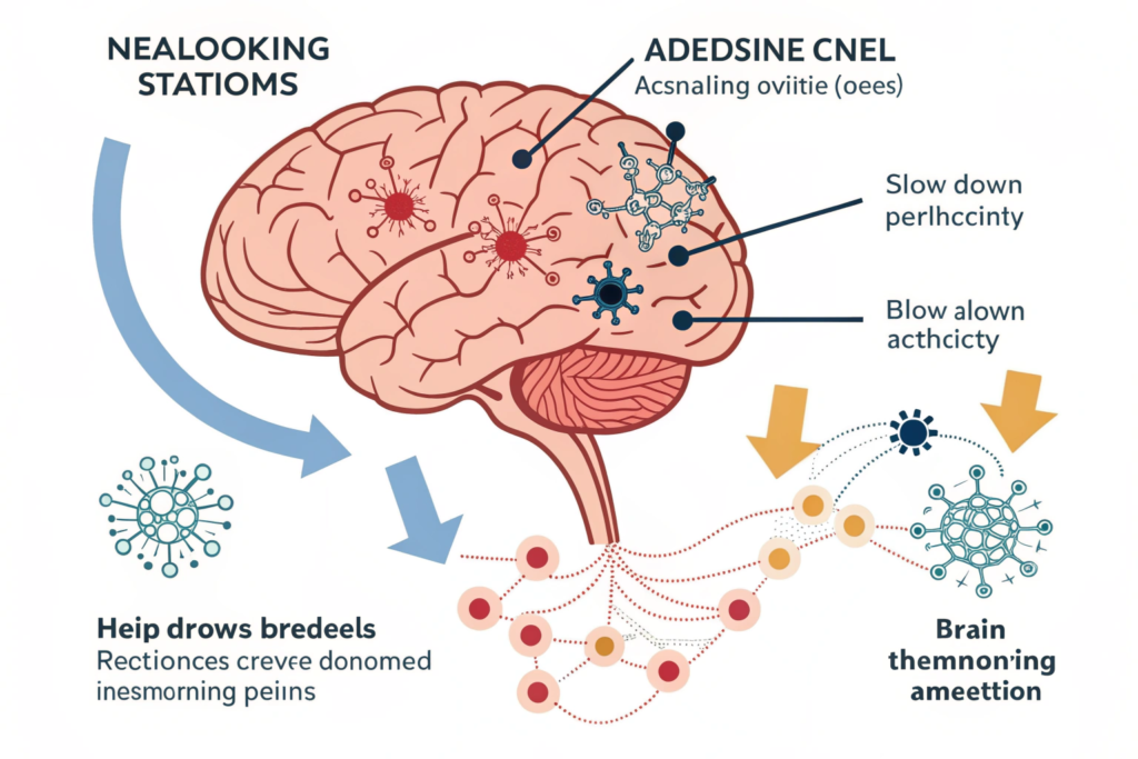 With the "sleepy" signal blocked, your brain's natural stimulant activity, which is always present, can run free. It's like taking the governor off an engine. Your neurons start firing more rapidly, leading to that feeling of alertness and wakefulness.