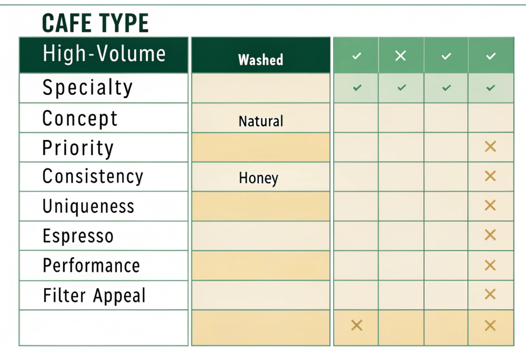 For most cafes aiming for sustainable success, a core washed or honey-based blend for espresso, complemented by rotating single-origins of various processes on filter, is the winning strategy. This provides the daily reliability your business needs alongside the excitement that keeps customers engaged.