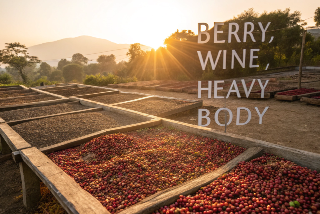 Natural processing is the ancient, sun-driven method where whole coffee cherries are dried with the fruit intact. This allows the bean to absorb sugars and fruity compounds, creating a radically different cup.