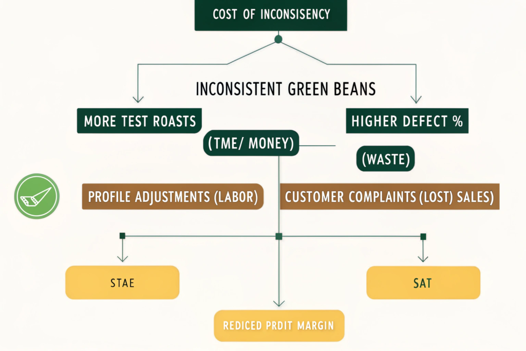 Inventory Chaos: If a new lot performs differently, you may be stuck with unusable green coffee or be forced to blend away a problem, potentially compromising other products. This disrupts cash flow and planning.