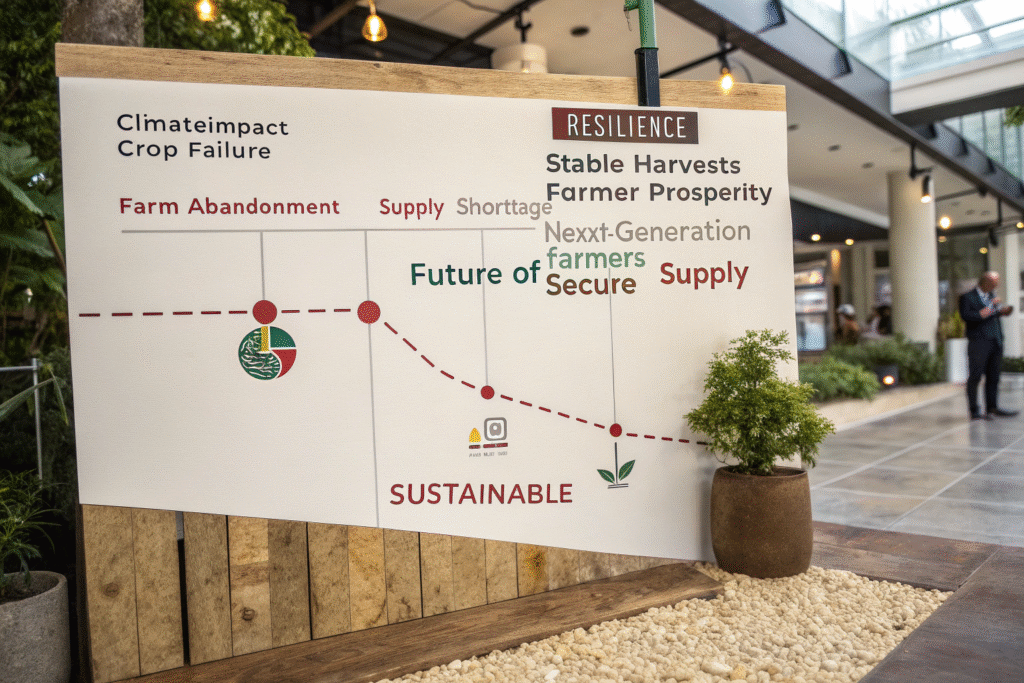 The most immediate business reason for supporting sustainability is risk mitigation. Climate change isn't a future threat—it's already disrupting harvests, increasing price volatility, and threatening the very regions where coffee grows.